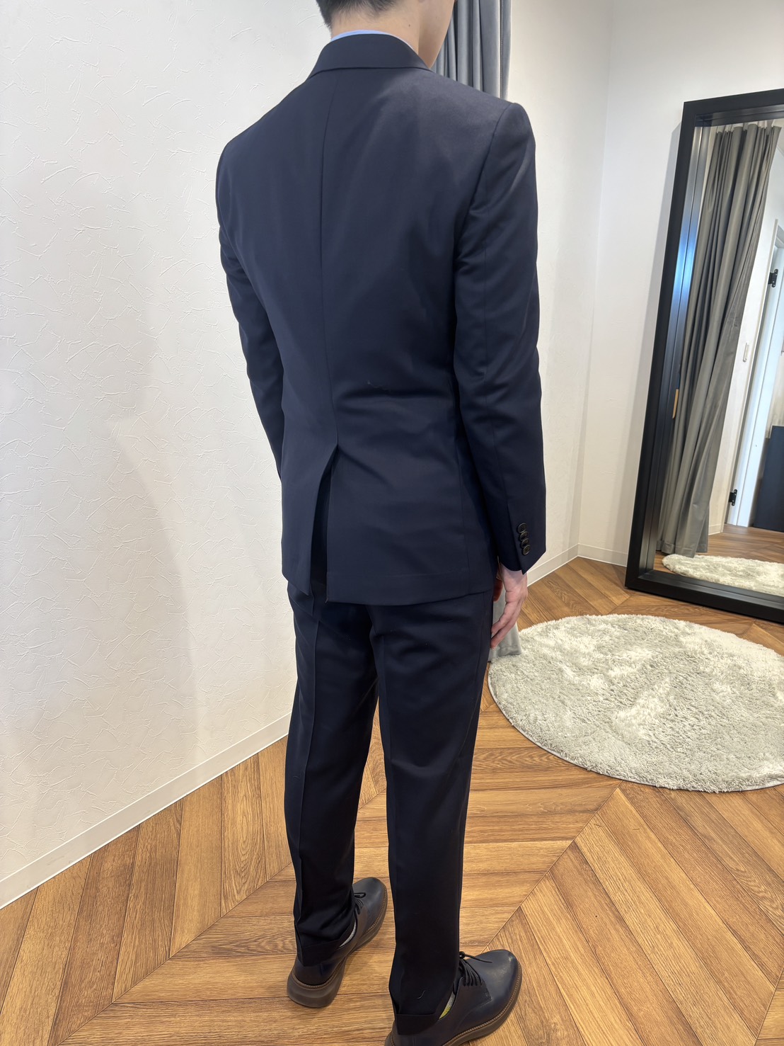 スーツの真価は、実は自分では見えない「後ろ姿」に現れます。