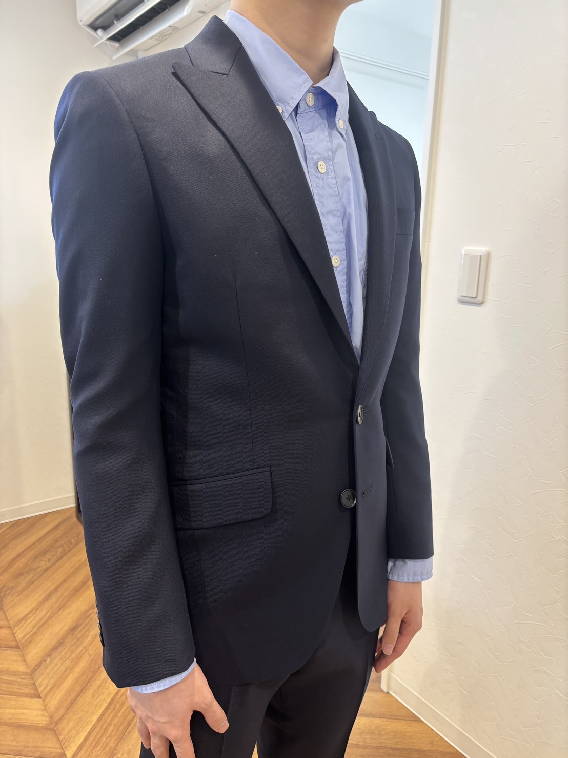 本日ご紹介するのは、ライフスタイルの変化によって「体格が変わってきた」というお悩みをお持ちだったお客様の一着。